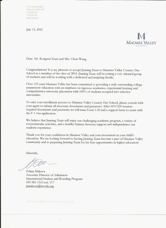 很快我们当天就递交了作文,学校看后非常满意,并表扬“Thanks for staying on top of things.”我们也表达了宣同学今后在该校努力学习的愿望,由此顺利的拿到OFFER。我们以及宣同学的家人心里的石头这才终于落了地。