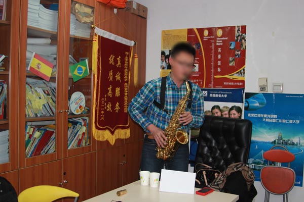 校长强调,申请学生不但要有比较好的成绩,还很看重学生的综合素质,下图是面试学生在展示自己的才艺,萨克斯独奏: