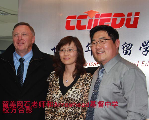 下图为留美网美国部总监 石老师和亚罗海德中学校长及招生主任的合影