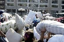 一年一度的枕头仗起源于2008年,最初由两名年轻人在网上发起。今年是枕头仗的第五个年头,每年四月的第一个周末,人们都会自发聚集在华盛顿广场,携带者自己“柔软的武器”,参加当天的活动。