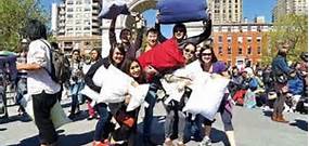 纽约举行枕头大战,留学生“武装”上阵释放压力