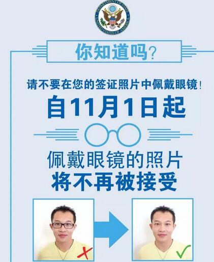申请赴美签证,还佩戴眼镜吗?那么,请知晓从11月1日起,美国驻华大使馆将不再接受签证申请中申请人佩戴眼镜的照片。