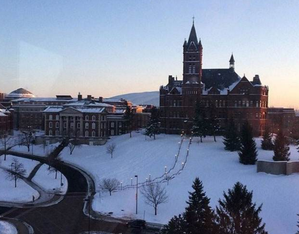 雪城大学位于美国纽约州中部的锡拉丘兹,素有CENTRAL NEW YORK之称,治安良好,环境优美,湖光山色,是十分美丽的都市。属于大陆型气候,四季分明,"逢春飘花,临夏荫浓,城秋枫红,瑞雪隆冬"是最佳写照。因受湖区气候效应的影响,锡拉丘兹在美国以降雪量丰富著称,因此Syracuse University又被美国人亲切地称为雪城大学,这便是" 雪城大学" 名称的由来。
