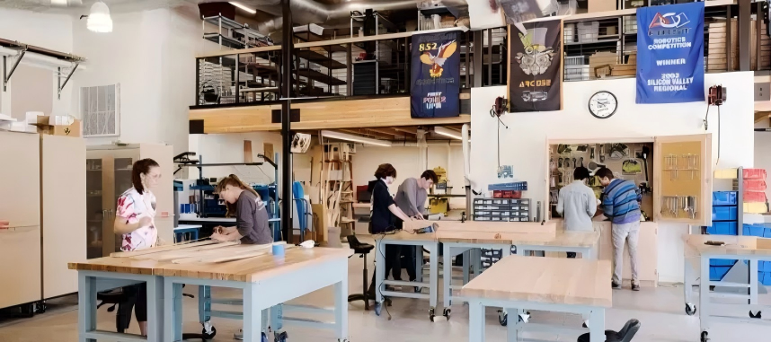 卡特创新工作室位于雅典校园的中心位置,让学生沉浸在雅典娜中学特有的动手、跨学科教育方法中,强调主动学习、制作和大胆尝试。这个5200平方英尺的工作室有三间教室,包括一个有金属和木工工具的区域,一个工业艺术区,以及一个计算机、CADD与3D打印机空间。