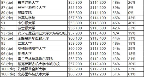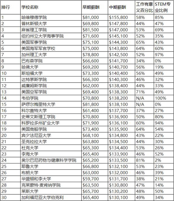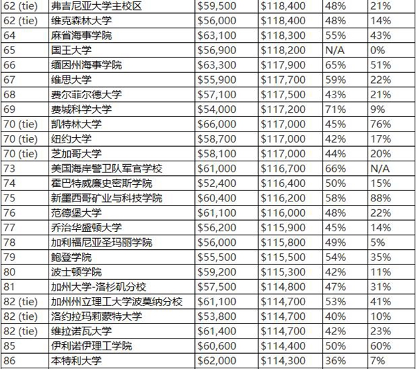 2018美国大学毕业生薪酬排行top100