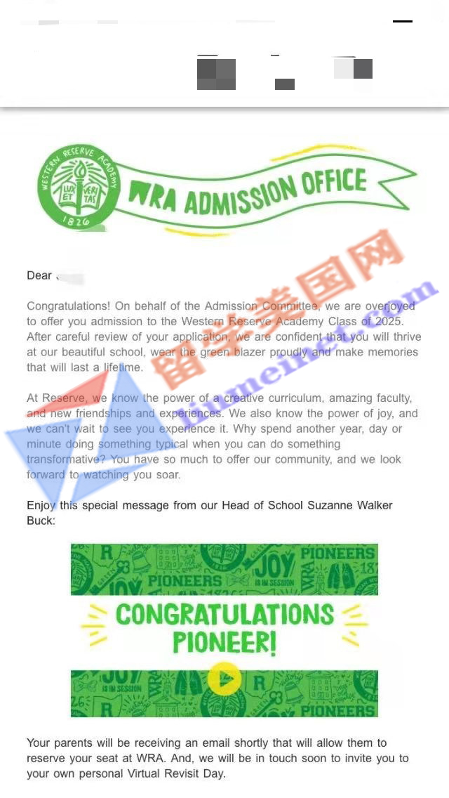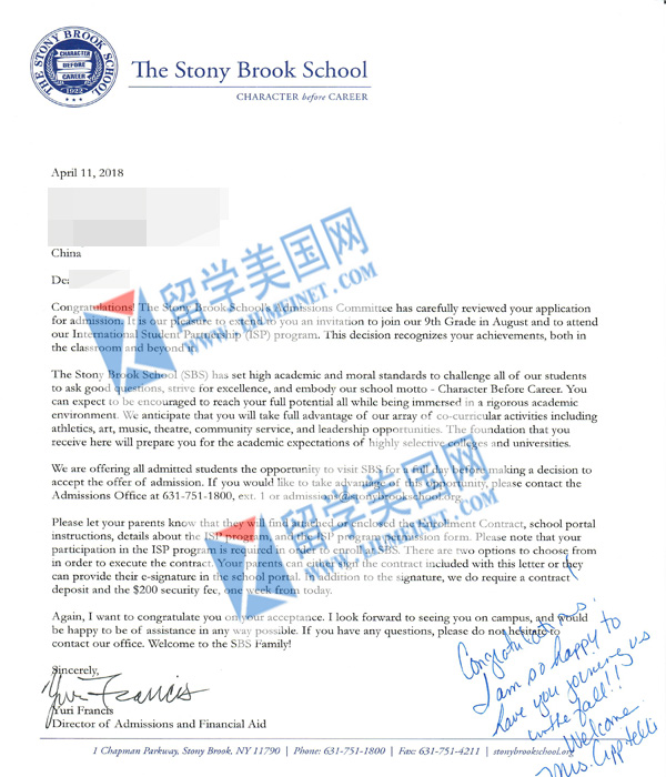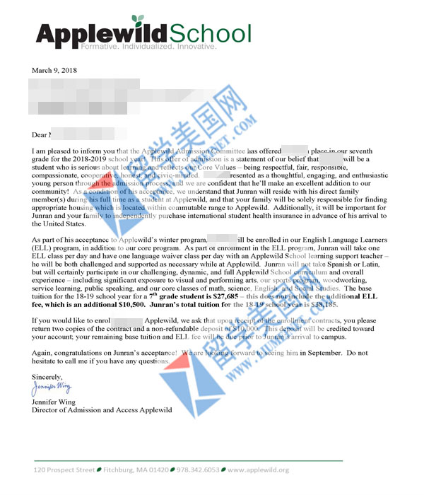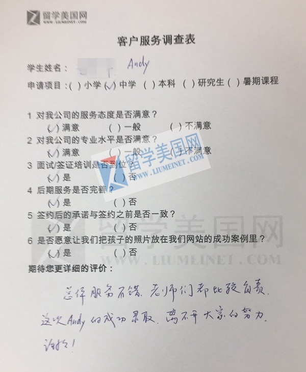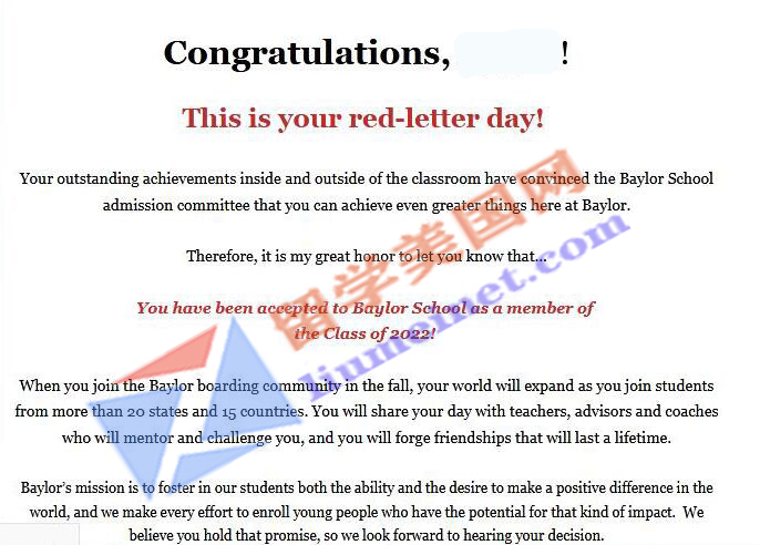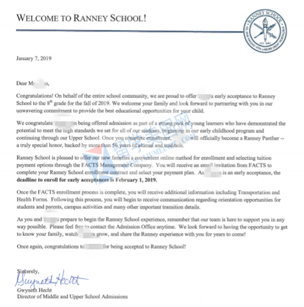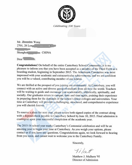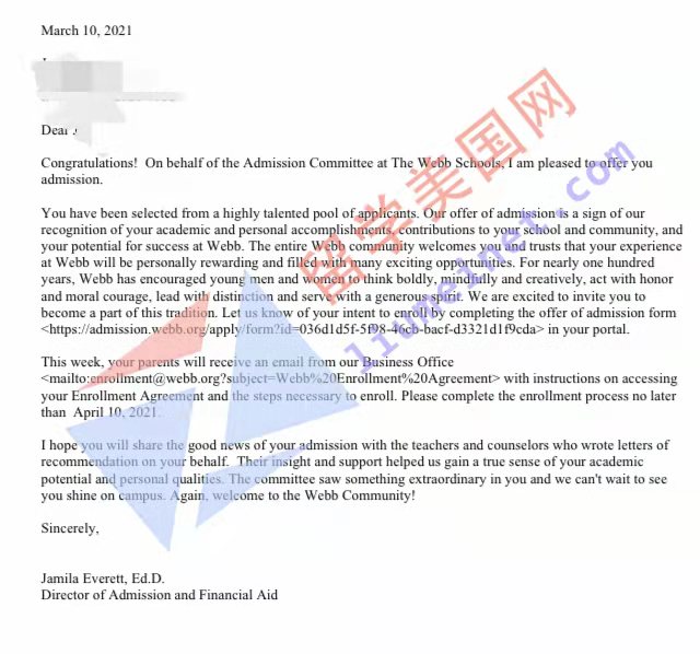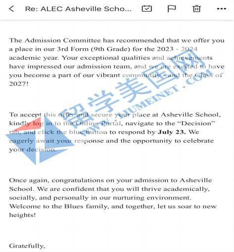 美高寄宿初中补录成功案例展示: