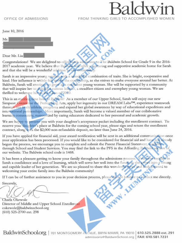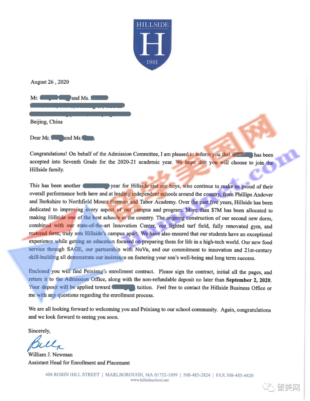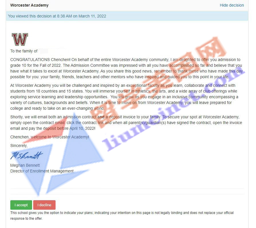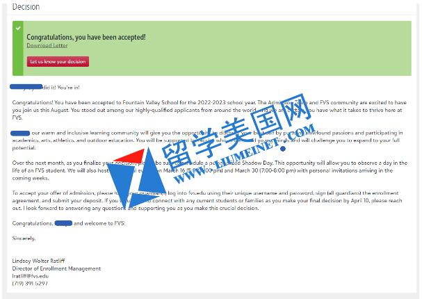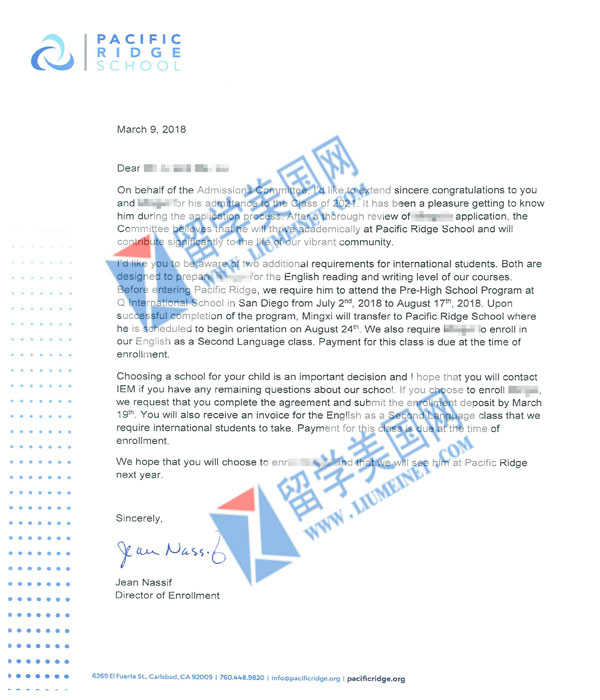 美高寄宿初中补录成功案例展示:
