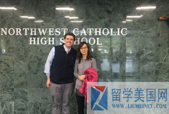 石老师走访了康州西北天主中学,该校位于康州富人区West Hartford, 学校拥有一的环境和设施。Northwest Catholic High School西北中学国际部招生主任Andrew带石老师参观了校园。