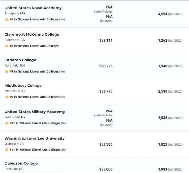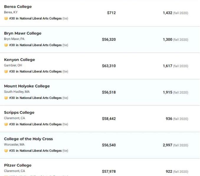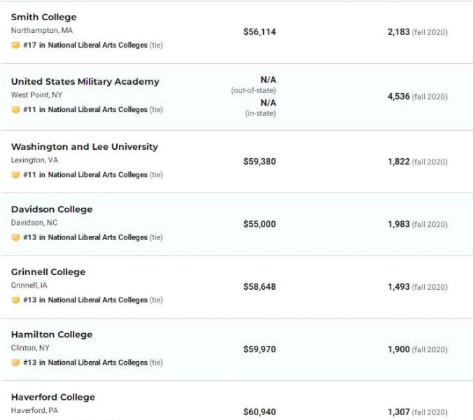 从以上的排名可以看出威廉姆斯学院、艾姆赫斯特学院和斯沃斯莫尔学院依旧牢稳占据三甲,波莫纳学院第4,韦尔斯利女子学院第5。
