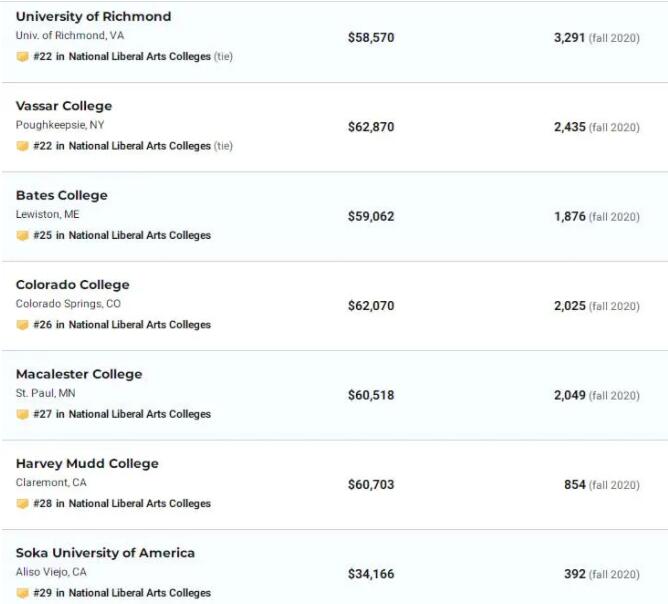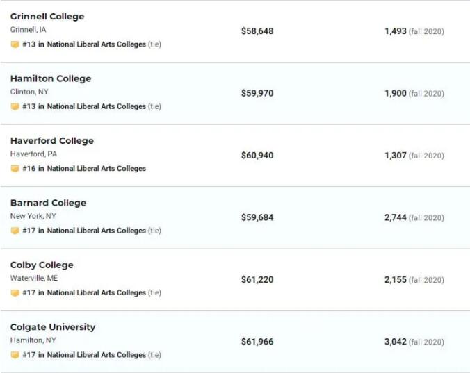 巴纳德女子学院跻身Top20,位列第17,与科尔比学院、科尔盖特大学、史密斯学院、卫斯理大学并列。
